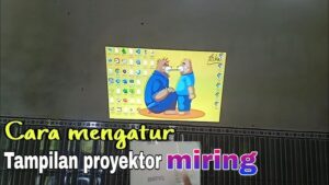 - Atur posisi proyektor agar sejajar dengan layar (tidak terlalu tinggi atau rendah).